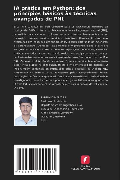 Este livro constitui um guia completo para os fascinantes domínios da Inteligência Artificial (IA) e do Processamento de Linguagem Natural (PNL), concebido para colmatar o fosso entre as teorias fundamentais e as aplicações práticas nestes domínios dinâmicos. Começando com uma exploração dos conceitos essenciais da IA, o texto aprofunda os meandros da aprendizagem automática, da aprendizagem profunda e dos desafios e soluções específicos da PNL. Através de explicações detalhadas, exemplos práticos e estudos de caso do mundo real, o livro equipa os leitores com os conhecimentos necessários para implementar soluções poderosas de IA e PNL. Abrange a utilização de bibliotecas Python proeminentes, oferecendo experiência prática na construção, treino e implementação de modelos. O livro também contempla as implicações éticas e sociais da IA e da PNL, preparando os leitores para navegarem pelas complexidades destas tecnologias de forma responsável. Destinado a entusiastas, profissionais e investigadores, este livro é uma ponte que liga os leitores à vanguarda da IA e da PNL, capacitando-os para contribuírem para a criação de soluções de IA e PNL.