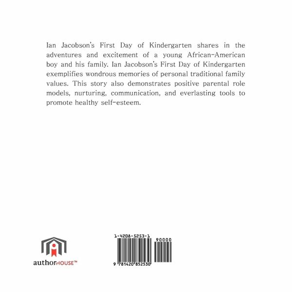 Ian Jacobson's First Day of Kindergarten shares in the adventures and excitement of a young African-American boy and his family. Ian Jacobson's First Day of Kindergarten exemplifies wondrous memories of personal traditional family values. This story also demonstrates positive parental role models, nurturing, communication, and everlasting tools to promote healthy self-esteem.