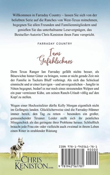 Dem Texas Ranger Ian Farraday gefällt nichts besser, als Bösewichte hinter Gitter zu bringen, wenn er nicht gerade Zeit mit der Familie in Tuckers Bluff verbringt. Als sich das Schicksal einmischt und er einer kurvigen - und unvergesslichen - Jungfer in Nöten begegnet, bedarf es nur noch eines streunenden Welpen und ein paar vermisster Kühe, um seinen Ranch-Urlaub völlig auf den Kopf zu stellen. Wegen einer Hochzeitsfeier dürfte Kelly Morgan eigentlich nicht im Gefängnis landen. Glücklicherweise sind die Farraday-Männer immer bereit, den Tag zu retten - besonders ein großer, gutaussehender Texaner. Leider stellt sich ihr peinliches Missgeschick als das geringste ihrer Probleme heraus. Schließlich braucht jede Frau ein- oder vielleicht auch zweimal in ihrem Leben einen Ritter in strahlender Rüstung. Herzlich willkommen in Farraday Country, Texas - die Heimat der Familie Farraday. Entdecken Sie die malerische Kleinstadt Tuckers Bluff - ein Ort zum Wohlfühlen, in dem Freundschaft, Verbundenheit und Liebe das Leben der Bewohner bestimmt.