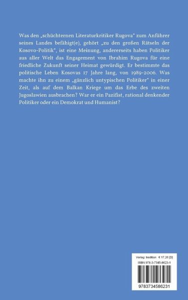Was den "schüchternen Literaturkritiker Rugova" zum Anführer seines Landes befähigt(e), gehört "zu den großen Rätseln der Kosovo-Politik", ist eine Meinung, andererseits haben Politiker aus aller Welt das Engagement von Ibrahim Rugova für eine friedliche Zukunft seiner Heimat gewürdigt. Er bestimmte das politische Leben Kosovas 17 Jahre lang, von 1989-2006. Was machte ihn zu einem "gänzlich untypischen Politiker" in einer Zeit, als auf dem Balkan Kriege um das Erbe des zweiten Jugoslawien ausbrachen? War er ein Pazifist, rational denkender Politiker oder ein Demokrat und Humanist?