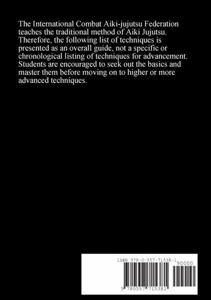 The complete catalogue of required techniques up to Yondan (4th Degree Black Belt) in Combat Aiki-jujutsu, including the rules, regulations and guidelines of the International Combat Aiki-jujutsu Federation.