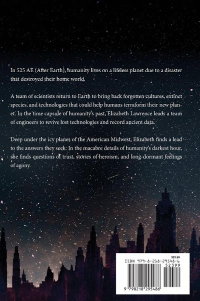In 525 AE (After Earth), humanity lives on a lifeless planet due to a disaster that destroyed their home world. A team of scientists return to Earth to bring back forgotten cultures, extinct species, and technologies that could help humans terraform their new planet. In the time capsule of humanity's past, Elizabeth Lawrence leads a team of engineers to revive lost technologies and record ancient data. Deep under the icy planes of the American Midwest, Elizabeth finds a lead to the answers they seek. In the macabre details of humanity's darkest hour, she finds questions of trust, stories of heroism, and long-dormant feelings of agony.