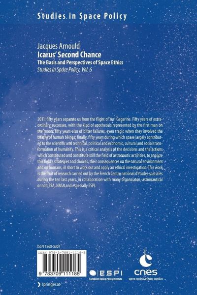 2011: fifty years separate us from the flight of Yuri Gagarin. Fifty years of extraordinary successes, with the kind of apotheosis represented by the first man on the moon; fifty years also of bitter failures, even tragic when they involved the deaths of human beings; finally, fifty years during which space largely contributed to the scientific and technical, political and economic, cultural and social transformation of humanity. This is a critical analysis of the decisions and the actions which constituted and constitute still the field of astronautic activities, to analyse this field's strategies and choices, their consequences on the natural environment and on humans, in short to work out and apply an ethical investigation. This work is the fruit of research carried out by the French Centre National d'Etudes Spatiales (CNES) over the past ten years, in collaboration with many organisations, astronautical or not: ESA, NASA and especially ESPI.