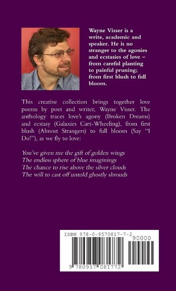This creative collection brings together love poems by South African poet and writer, Wayne Visser. The anthology traces love's agony (Broken Dreams) and ecstasy (Galaxies Cart-Wheeling), from first blush (Almost Strangers) to full bloom (Say "I Do!"), as we fly to love: You've given me the gift of golden wings The endless sphere of blue imaginings The chance to rise above the silver clouds The will to cast off untold ghostly shrouds