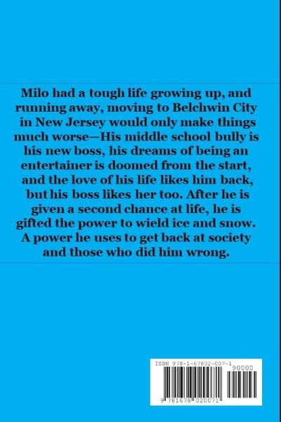 Milo had a tough life growing up, and running away, moving to Belchwin City in New Jersey would only make things much worse--His middle school bully is his new boss, his dreams of being an entertainer is doomed from the start, and the love of his life likes him back, but his boss likes her too. After he is given a second chance at life, he is gifted the power to wield ice and snow. A power he uses to get back at society and those who did him wrong.