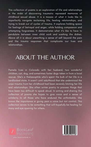 This collection of poems is an exploration of life and relationships in the midst of discovering traumatic repressed memories of childhood sexual abuse. It is a mosaic of what it looks like to imperfectly navigate reclaiming life, healing relationships, and trying to break out of cycles of trauma. It explores holding space for feelings of betrayal and anger, while holding compassion and attempting forgiveness. It demonstrates what it's like to have to pendulate between inner child work and washing the dishes. Above all it is about unearthing a sense of self beyond the pain and the trauma responses that complicate our lives and relationships.