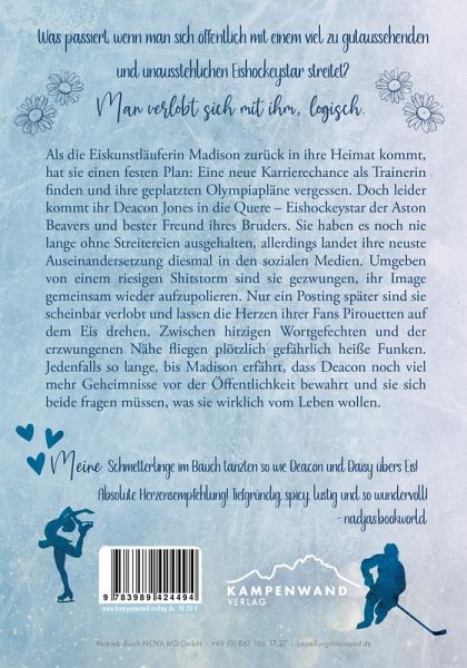 Umgeben von einem riesigen Shitstorm sind sie gezwungen, ihr Image gemeinsam wieder aufzupolieren. Nur ein Posting später sind sie scheinbar verlobt und lassen die Herzen ihrer Fans Pirouetten auf dem Eis drehen. Zwischen hitzigen Wortgefechten und der erzwungenen Nähe fliegen plötzlich gefährlich heiße Funken. Jedenfalls so lange, bis Madison erfährt, dass Deacon noch viel mehr Geheimnisse vor der Öffentlichkeit bewahrt und sie sich beide fragen müssen, was sie wirklich vom Leben wollen.