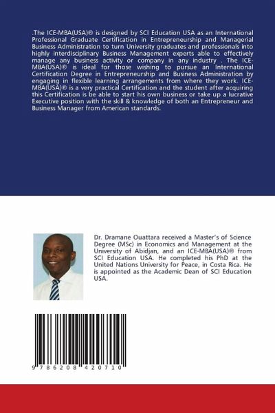 .The ICE-MBA(USA)® is designed by SCI Education USA as an International Professional Graduate Certification in Entrepreneurship and Managerial Business Administration to turn University graduates and professionals into highly interdisciplinary Business Management experts able to effectively manage any business activity or company in any industry . The ICE-MBA(USA)® is ideal for those wishing to pursue an International Certification Degree in Entrepreneurship and Business Administration by engaging in flexible learning arrangements from where they work. ICE-MBA(USA)® is a very practical Certification and the student after acquiring this Certification is be able to start his own business or take up a lucrative Executive position with the skill & knowledge of both an Entrepreneur and Business Manager from American standards.