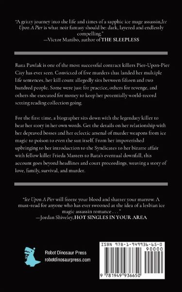My warped sense of morality embarrasses me. Ruta Pawlak is one of the most successful contract killers Pier-Upon-Pier City has ever seen. Convicted of five murders that landed her multiple life sentences, her kill count allegedly sits between fifteen and two hundred people. Some were just for practice, others for revenge, and others she executed for money to keep her potentially world-record setting reading collection going. For the first time, a biographer sits down with the legendary killer to hear her story in her own words. Get the details on her relationship with her depraved bosses and her eclectic arsenal of murder weapons from ice magic to poison to even the sun itself. From her impoverished upbringing to her introduction to the Syndicates to her bizarre affair with fellow killer Frieda Masters to Ruta's eventual downfall, this account goes beyond headlines and court proceedings, weaving a story of love, family, survival, and murder. This novella is perfect for fans of true crime, fantasy, noir, The Last Podcast on the Left, and the interview portions of AMC's Interview with the Vampire series. Humans killing other humans wasn't natural. Humans killing monsters, however, might be.