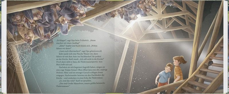 Das Buch nimmt uns mit in den Garten von Sophie, Karli und ihren Großeltern, wo die Familie gemeinsam die faszinierende Welt der Fledermäuse entdeckt. Die kindgerechte Erzählung verbindet Naturbeobachtungen mit spannenden Fakten. So erfahren Leserinnen und Leser, wovon Fledermäuse sich ernähren, wie sie sich mit Hilfe der Echoortung orientieren und welche Feinde ihnen gefährlich werden können.
