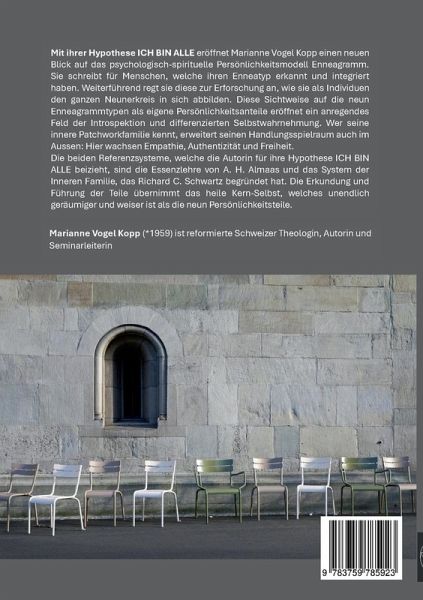 Mit ihrer Hypothese ICH BIN ALLE eröffnet Marianne Vogel Kopp einen neuen Blick auf das psychologisch-spirituelle Persönlichkeitsmodell Enneagramm. Sie schreibt für Menschen, welche ihren Enneatyp erkannt und integriert haben. Weiterführend regt sie diese zur Erforschung an, wie sie als Individuen den ganzen Neunerkreis in sich abbilden. Diese Sichtweise auf die neun Enneagrammtypen als eigene Persönlichkeitsanteile eröffnet ein anregendes Feld der Introspektion und differenzierten Selbstwahrnehmung. Wer seine innere Patchworkfamilie kennt, erweitert seinen Handlungsspielraum auch im Aussen: Hier wachsen Empathie, Authentizität und Freiheit. Die beiden Referenzsysteme, welche die Autorin für ihre Hypothese ICH BIN ALLE beizieht, sind die Essenzlehre von A. H. Almaas und das System der Inneren Familie, das Richard C. Schwartz begründet hat. Die Erkundung und Führung der Teile übernimmt das heile Kern-Selbst, welches unendlich geräumiger und weiser ist als die neun Persönlichkeitsteile.