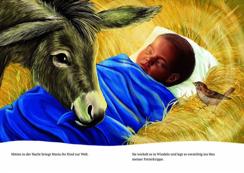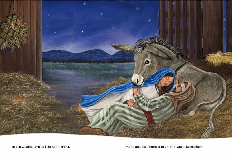 "Ich bin der kleine Esel. Mit Josef und Maria bin ich auf dem Weg nach Betlehem. Es ist weit. Und es ist kalt."