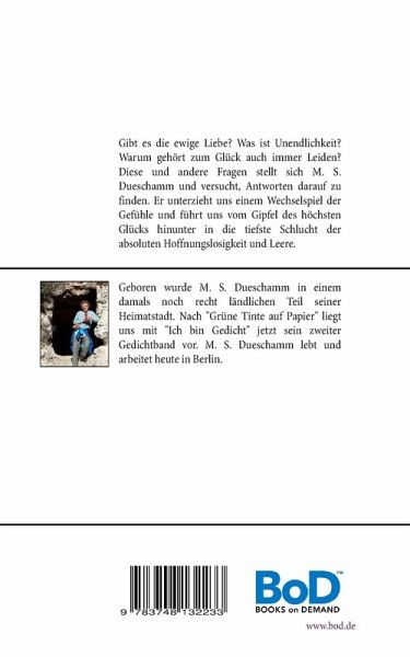 Gibt es die ewige Liebe? Was ist Unendlichkeit? Warum gehört zum Glück auch immer Leiden? Diese und andere Fragen stellt sich M. S. Dueschamm und versucht, Antworten darauf zu finden. Er unterzieht uns einem Wechselspiel der Gefühle und führt uns vom Gipfel des höchsten Glücks hinunter in die tiefste Schlucht der absoluten Hoffnungslosigkeit und Leere.
