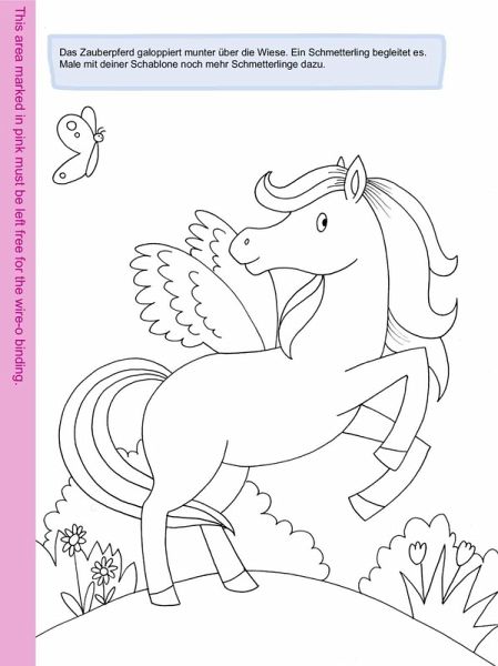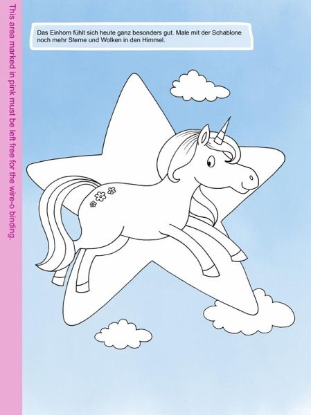 Lass deiner Kreativität freien Lauf und gestalte die Seiten ganz nach deinen Vorstellungen. Schnapp dir die Schablone und male Sterne für die Zauberpferde oder Flügel für die Einhörner! Such dir außerdem die passenden Sticker und dekoriere deine Bilder! 40 Seiten mit vielen farbigen Hintergründen warten darauf, von dir zum Leben erweckt zu werden.