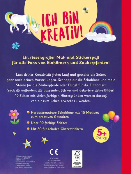 Ein riesengroßer Mal- und Stickerspaß für alle Fans von Einhörnern und Zauberpferden!