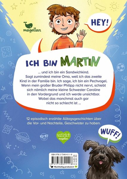 In Martins Familie gibt es Oma, Mama und Papa, Caroline, Philipp - oh und Martin! Martin wird ab und zu vergessen, denn er ist als zweitgeborenenes Kind unsichtbar in der Mitte des Familiensandwichs. Martin findet das doof. Zumindest hin und wieder. Von Zeit zu Zeit ist es aber auch gar nicht so übel, einen älteren Bruder oder eine kleine Schwester zu haben ...