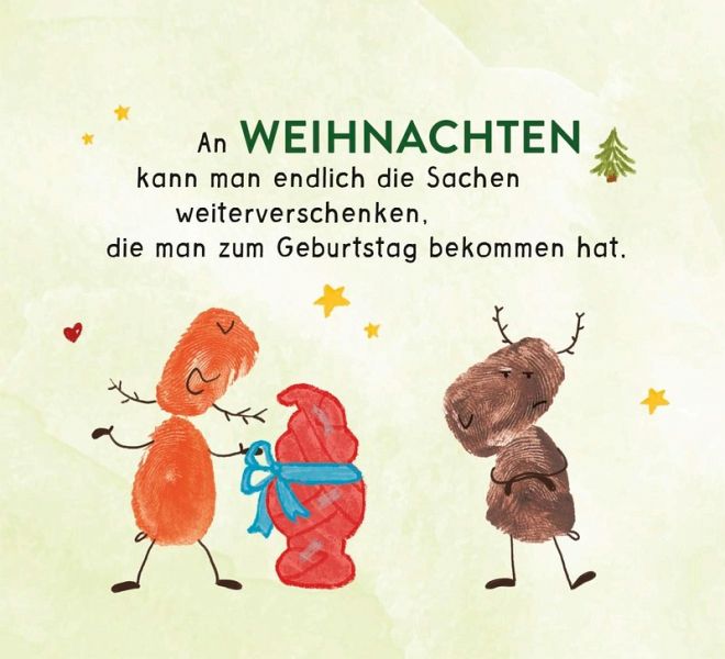 Süßes kleines Wichtelgeschenk oder zu NikolausLustige Sprüche für Advent und WeihnachtenMit niedlichen Illustrationen im Fingerprint-StilOriginelle Alternative zu einem klassischen AdventskalenderKompakter Spiralaufsteller mit 52 Seiten