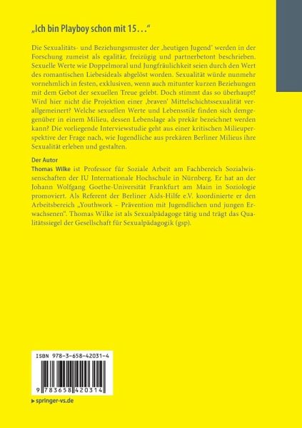 Der Autor Thomas Wilke ist Professor für Soziale Arbeit am Fachbereich Sozialwissenschaften der IU Internationale Hochschule in Nürnberg. Er hat an der Johann Wolfgang Goethe-Universität Frankfurt am Main in Soziologie promoviert. Als Referent der Berliner Aids-Hilfe e.V. koordinierte er den Arbeitsbereich "Youthwork - Prävention mit Jugendlichen und jungen Erwachsenen". Thomas Wilke ist als Sexualpädagoge tätig und trägt das Qualitätssiegel der Gesellschaft für Sexualpädagogik (gsp).