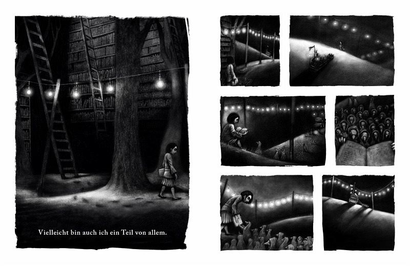 Dieses Bilderbuch bewegt und berührt mich, es macht mich traurig und gleichzeitig so glücklich, es zerreißt mich fast, aber bringt am Ende so viel Zuversicht und Licht, beginnt es doch recht düster und sehr melancholisch. Wer ist dieses Mädchen? Warum ist es so traurig und still, ist es das