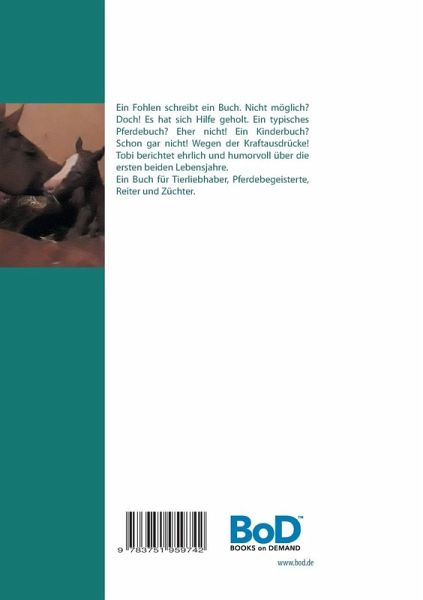 Ein Fohlen schreibt ein Buch. Nicht möglich! Doch! Es hat sich Hilfe geholt. Ein typisches Pferdebuch? Eher nicht! Ein Kinderbuch? Schon gar nicht! Wegen der Kraftausdrücke! Tobi berichtet ehrlich und humorvoll über die ersten beiden Lebensjahre.Ein Buch für Tierliebhaber, Pferdebegeisterte, Reiter und Züchter.