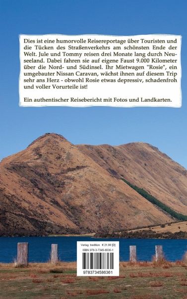 "Ich bremse auch für Singvögel - Ein Campervan erzählt aus Neuseeland" ist eine humorvolle Reisereportage über Touristen und die Tücken des Straßenverkehrs am schönsten Ende der Welt. Jule und Tommy reisen drei Monate lang durch Neuseeland. Dabei fahren sie auf eigene Faust 9.000 Kilometer über die Nord- und Südinsel. Ihr Mietwagen "Rosie", ein umgebauter Nissan Caravan, wächst ihnen auf diesem Trip sehr ans Herz - obwohl Rosie etwas depressiv, schadenfroh und voller Vorurteile ist!