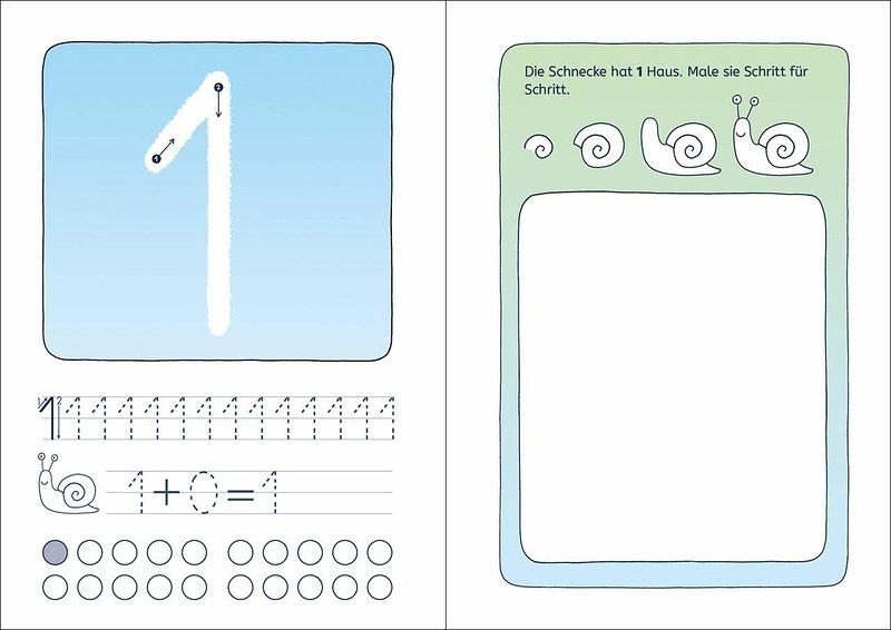 Schult den Umgang mit dem StiftMit Zeichenanleitungen zur Förderung der FeinmotorikIn einfachen Schritten schreiben lernenIch entdecke die Zahlen kombiniert erstes Schreiben mit spannenden Beschäftigungsaufgaben und kindgerechten Zeichenübungen zur Förderung der Feinmotorik. Spielerisch lernen Kinder im Vorschulalter die Zahlen von 1 bis 20 kennen, trainieren den Umgang mit dem Stift und können das Gelernte durch die Verknüpfung mit lustigen Zeichnungen langfristig speichern.