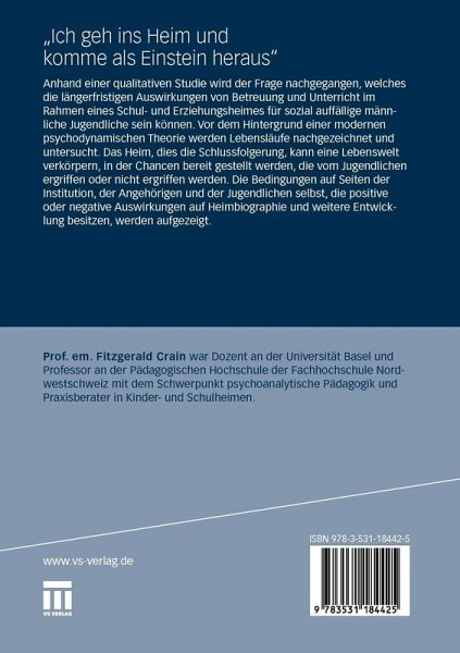 Anhand einer qualitativen Studie wird der Frage nachgegangen, welches die längerfristigen Auswirkungen von Betreuung und Unterricht im Rahmen eines Schul- und Erziehungsheimes für sozial auffällige männliche Jugendliche sein können. Vor dem Hintergrund einer modernen psychodynamischen Theorie werden Lebensläufe nachgezeichnet und untersucht. Das Heim, dies die Schlussfolgerung, kann eine Lebenswelt verkörpern, in der Chancen bereit gestellt werden, die vom Jugendlichen ergriffen oder nicht ergriffen werden. Die Bedingungen auf Seiten der Institution, der Angehörigen und der Jugendlichen selbst, die positive oder negative Auswirkungen auf Heimbiographie und weitere Entwicklung besitzen, werden aufgezeigt.