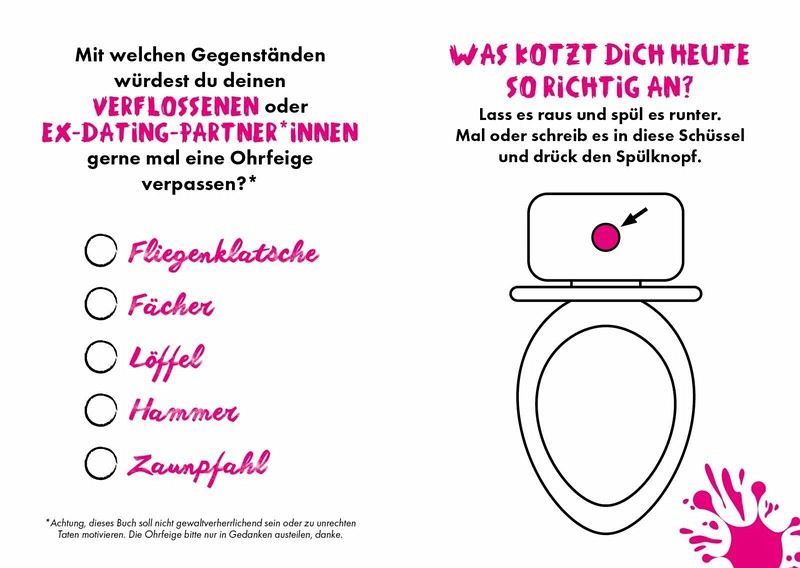Doch bevor du dich vor lauter Frust zu einer Straftat hinreißen lässt oder weinend auf dem Sofa sitzt: Verarbeite deine Emotionen mit diesem Buch. Die vielen Möglichkeiten zum Kritzeln, Reißen, Falten, Schreiben und Malen helfen dir dabei, deine Wut abzubauen und alles, was an der Liebe nervt, mit Humor zu ertragen.
