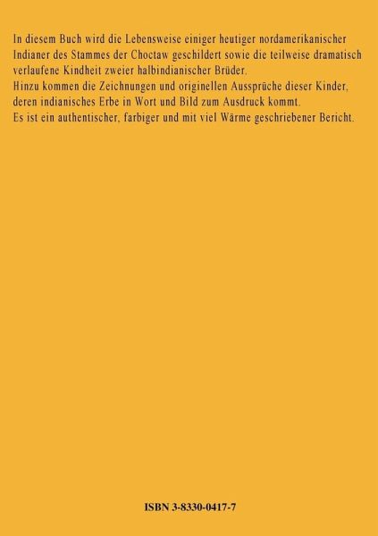 In diesem Buch wird die Lebensweise einiger heutiger nordamerikanischer Indianer vom Stamme der Choctaws geschildert sowie die teilweise dramatisch verlaufene Kindheit zweier halbindianischer Brüder. Hinzu kommen die Zeichnungen und originellen Aussprüche dieser Kinder, deren indianisches Erbe in Wort und Bild zum Ausdruck kommt. Es ist ein authentischer, farbiger und mit viel Wärme geschriebener Bericht.