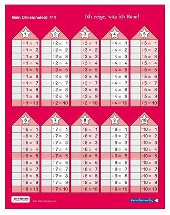 Ich übe alle Divisionsaufgaben:Auf der wiederbeschreibbaren Doppelkarte kann jedes Kind alle Divisionsaufgaben immer wieder üben und rückseitig selbst kontrollieren.Die Ergebnisse trägt der Schüler mit dem Spezialstift in die Kästchen ein. Die 200 Aufgaben sind ungeordnet.Mein Divisionsfeld:Hier können die Divisionsreihen immer wieder geübt werden.Jedes Kind kann auf der Rückseite die Felder ausfüllen und sich selbstgesteuert kontrollieren mit Hilfe der Vorderseite.Praktisch und stabil, prima geeignet für den täglichen Gebrauch im Unterricht und zu Hause.Trocken abwischbar ohne zu schmieren und ohne Farbrückstände.1 Klapptafel und 1 DIN A4+ Tafel mit Spezialstift - Made in Germany.