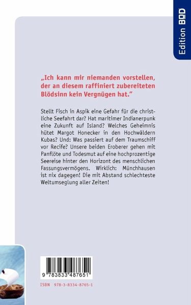 Stellt Fisch in Aspik eine Gefahr für die christliche Seefahrt dar? Hat maritimer Indianerpunk eine Zukunft auf Island? Welches Geheimnis hütet Margot Honecker in den Hochwäldern Kubas? Und: Was passiert auf dem Traumschiff vor Recife? Unsere beiden Eroberer gehen mit Panflöte und Todesmut auf eine hochprozentige Seereise hinter den Horizont des menschlichen Fassungsvermögens. Wirklich: Münchhausen ist nix dagegen! Die mit Abstand schlechteste Weltumseglung aller Zeiten!