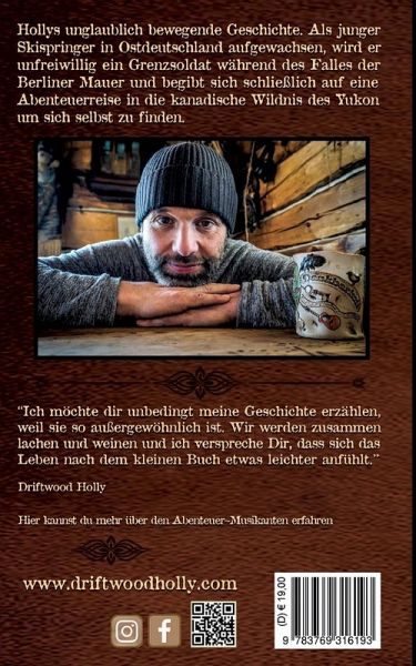 Driftwood Holly ist wirklich außergewöhnlich. Ein wahrer Abenteuer-Musiker, Enthusiast, Möglichmacher und neuerdings auch Autor. Seine Lebensgeschichte ist fesselnd und voller lebendiger Erfahrungen. In seinen frühen Tagen versuchte er sich als Skispringer und Nordisch Kombinierter in Oberwiesenthal. Im Alter von 19 Jahren wurde er zum Pflichtwehrdienst an die Berliner Mauer eingezogen. Er wurde Zeuge des Mauerfalls und war Teil dieses historischen Ereignisses. Nach dem Ende der DDR begab sich Holly auf abenteuerliche Reisen in die weite Welt und fand in einer alten Gitarre einen treuen Begleiter für die gelegentlichen Momente der Einsamkeit. Nach vielen Länder und großen Veränderungen begab sich Holly auf eine Visionssuche. Er wählte den Yukon River im Nordwesten Canadas und folgte Jack Londons "Ruf der Wildnis" auf dem Weg in das nächste Kapitel seines Lebens. 1998 hat sich Driftwood Holly in Dawson City, auf der anderen Seite des Flusses, niedergelassen und führt seitdem ein Wildnis-Leben mit seiner Frau Kirsten und zwei inzwischen erwachsenen Kindern. Er fuhr jahrelang mit einem Planwagen, durchquerte die Eislandschaften des Yukon mit seinen Schlittenhunden oder verbrachte Zeit auf seinem rustikalen Hausboot, der "Wooden Pearl". In all diesen Jahren hat Driftwood Holly Songs und Geschichten geschrieben und sich 2013 entschieden sein Debütalbum "Little Lilly Mammoth Hair" in seiner Blockhütte aufzunehmen. In dieser Zeit wurde Jäcki Reznicek, ein Mitglied der deutschen Kultband "Silly", auf Hollys Musik aufmerksam. Fasziniert tauchte Reznicek in Driftwoods Geschichte ein und schloss sich ihm schließlich auf einer Tournee mit dem talentierten Violinisten Pavel Osvald an. Die Auftritte des Trios fangen den Zeitgeist und resultierten in 4 erfolgreichen Folk Alben und zahllosen Tourneen. Als das Jahr 2021 anbrach und keine öffentlichen Auftritte möglich waren, mobilisierte all seine Erfahrungen aus seinem Wald- und Flussleben und kreierte eine schwimmende Show-Bühne im Yukon-Stil. Mit einem Hauch von Tom Sawyer entwarf und baute er in nur 8 Wochen die "Dream ~ Catcher". Anschließend fuhr er mit diesem Schiff die deutsche Elbe hinunter und gab über 30 Strandkonzerte zur unbeschreiblichen Freude der Menschen, welche sich nach Kunst sehnten. Driftwood Holly's außergewöhnlicher Weg führen ihn immer wieder an besondere, an magische Plätze. Mit seinem ersten Buch schlägt er das nächste Kapitel seines Lebens auf und freut sich, dich dabei zu haben.