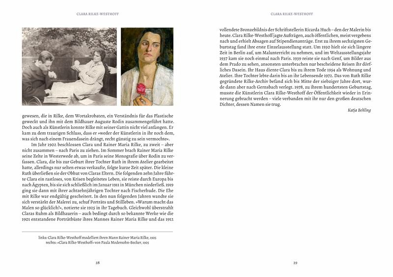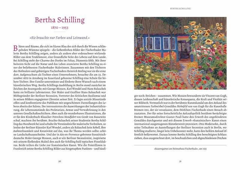 Auftritt der Frauen Worpswede und Fischerhude - Paula Modersohn-Becker - Clara Rilke-Westhoff - Bertha Schilling Hiddensee, Ahrenshoop und Nidden - Katharina Bamberg - Elisabeth Büchsel - Clara Arnheim & Henni Lehmann - Anna Gerresheim - Elisabeth von Eicken - Helene Neumann Hamburg und Dänemark - Alma del Banco - Anita Rée - Käte Lassen - Emma Ritter Berlin - Julie Wolfthorn - Augusta von Zitzewitz - Charlotte Berend-Corinth - Käthe Kollwitz Dachau - Maria Langer-Schöller - Paula Wimmer - Johanna Oppenheimer München und Murnau - Marianne Werefkin - Gabriele Münter - Martha Schrag Zürich - Sophie Taeuber-Arp - Clara von Rappard - Louise Breslau Wien - Broncia Koller - Tina Blau Nirgendwo zu Hause - Marie-Louise von Motesiczky - Else Lasker-Schüler Verzeichnis der Museen Register Bildnachweis