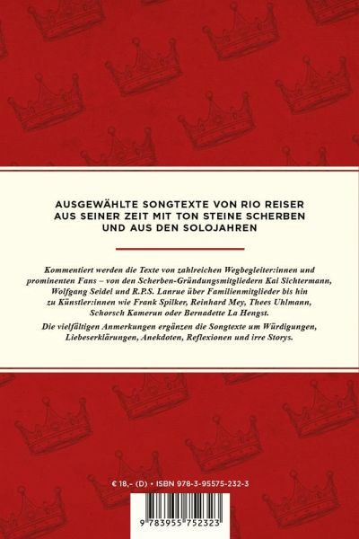 Die Faszination für seine zeitlosen Texte und Lieder ist ungebrochen, wie sich an der anhaltenden Rezeption in Dokumentationen, Podcasts und Ausstellungen zeigt. So ist es kaum zu glauben, dass es bisher noch keinen karriereübergreifenden Band mit den Texten Reisers gab - eine Lücke, die nun endlich geschlossen wird. »Ich will ich sein« enthält über 100 Songtexte, sowohl aus seiner Zeit mit Ton Steine Scherben als auch den Solojahren.