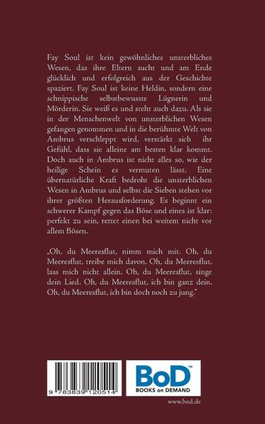Fay Soul ist kein gewöhnliches unsterbliches Wesen, das ihre Eltern sucht und am Ende glücklich und erfolgreich aus der Geschichte spaziert. Fay Soul ist keine Heldin, sondern eine schnippische, selbstbewusste Lügnerin und Mörderin. Sie weiß es und steht auch dazu. Als sie in der Menschenwelt von unsterblichen Wesen gefangen genommen und in die berühmte Welt von Ambrus verschleppt wird, verstärkt sich ihr Gefühl, dass sie alleine am besten klar kommt.Doch auch in Ambrus ist nicht alles so, wie der heilige Schein es vermuten lässt. Eine übernatürliche Kraft bedroht die unsterblichen Wesen in Ambrus und selbst die Sieben stehen vor ihrer größten Herausforderung. Es beginnt ein schwerer Kampf gegen das Böse und eines ist klar: perfekt zu sein, rettet einen bei weitem nicht vor allem Bösen."Oh, du Meeresflut, nimm mich mit. Oh, duMeeresflut, treibe mich davon. Oh, du Meeresflut,lass mich nicht allein. Oh, du Meeresflut, singedein Lied. Oh, du Meeresflut, ich bin ganz dein.Oh, du Meeresflut, ich bin doch noch zu jung."