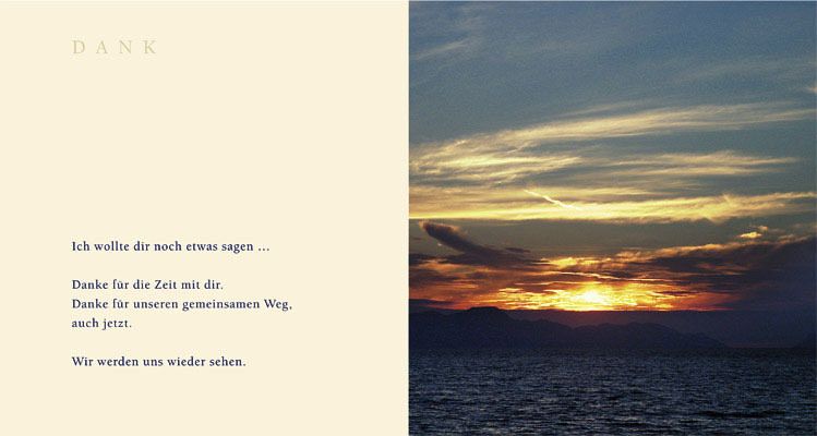 Ansprechend gestaltetes Geschenkbuch mit ausgewählten Texten und Fotos mit tröstenden Worten nach Verlust eines wichtigen Menschen