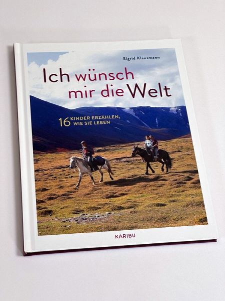 zwischen den Bergen. Schlägt man das Buch auf, sieht man eine Weltkarte und Fotos der Kinder und…mehrDas Kinder- und Jugendbuch "Ich wünsche mir die Welt - 16 Kinder erzählen, wie sie Leben" von Sigrid Klausmann ist am 02.09.2023 im Karibu Verlag erschienen. Gedacht ist das Buch für Kinder und Jugendlliche ab 8 Jahren. Das Cover strahlt Abenteuer pur aus. Man sieht zwei Kinder auf einem Pferd zwischen den Bergen. Schlägt man das Buch auf, sieht man eine Weltkarte und Fotos der Kinder und Jugendlichen, die im Buch zu Wort kommen. Somit erhalten die Leserinnen und Leser einen ersten Einblick aus welchen Ländern die Kinder kommen. Ein kleiner Brief vom Autor, zu Beginn des Buches, erzählt die Entstehungsgeschichte des Buches und erklärt das Projekt "199 kleine Held*innen". Der Autor hat sich zum Ziel gemacht, die Kinder auf der Welt sichtbar zu machen und aufzuzeigen, dass sie die Zukunft der Welt sind. Dann kommt als erstes Annalena aus dem Schwarzwald zu Wort. Sie erzählt, dass sie in den Bergen wohnt und einen langen Weg zum Schulbus zurücklegen muss. Treffen mit Freundinnen nach der Schule sind beinahe unmöglich, da sie zu weit weg wohnt. Dann geht es weiter zu Cynthia aus Burundi. Sie lebt bei ihrer Tante, da ihre beiden Eltern an Malaria verstorben sind. Die Kinder in Burundi müssen von klein auf, schwere Wasserbehälter auf dem Kopf tragen lernen und schlafen auf dem Boden in kleinen Hütten. Cynthia strengt sich in der Schule besonders an, denn sie möchte unbedingt das Abitur schaffen und im Parlament Mitglied werden. Und so geht es weiter mit vielen anderen Kindern auf der Welt. Am Ende des Buches gibt es zwei Seiten mit Fragen an die Lese*rinnen zum Beantworten. Das war für uns Eltern natürlich sehr spannend. Auf der letzten Seite können anhand von QR-Code noch FIlme der einzelnen Kinder angeschaut werden.