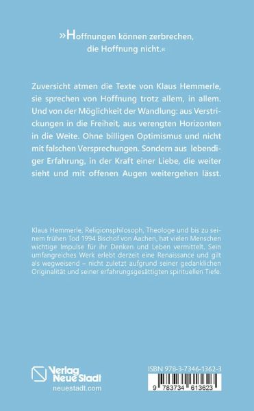 Ich wünsche uns Osteraugen»Hoffnungen können zerbrechen, die Hoffnung nicht«Zuversicht atmen die Texte von Klaus Hemmerle, sie sprechen von Hoffnung trotz allem, in allem. Und von der Möglichkeit der Wandlung: aus Verstrickungen in die Freiheit, aus verengten Horizonten in die Weite. Ohne billigen Optimismus und nicht mit falschen Versprechungen. Sondern aus lebendiger Erfahrung, in der Kraft einer Liebe, die weiter sieht und mit offenen Augen weitergehen lässt.Wie der Frühling spricht Ostern von neuem Leben. Dieses Buch versammelt immer wieder zitierte Texte eines »Meister des Wortes«: Klaus Hemmerle verstand es, Fragen und Erfahrungen zu lesen im Horizont biblischer Zuversicht. Ausgewählte kurze Gedanken bahnen der Hoffnung den Weg.· Ermutigung aus einer Quelle, die trägt · Zur persönlichen Betrachtung, auch in der Fastenzeit, sowie als Geschenk für viele GelegenheitenMit einem Vor- und Nachwort von Bernd Aretz.