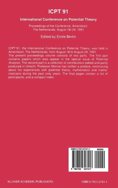 ICPT91, the International Conference on Potential Theory, was held in Amersfoort, the Netherlands, from August 18--24, 1991. The volume consists of two parts, the first of which contains papers which also appear in the special issue of POTENTIAL ANALYSIS . The second part includes a collection of contributions edited and partly produced in Utrecht. Professor Monna wrote a preface reminiscing about his experiences with potential theory, mathematics and mathematicians during the last sixty years. The final pages contain a list of participants and a compact index.