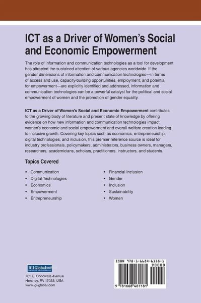 The role of information and communication technologies as a tool for development has attracted the sustained attention of various agencies worldwide. If the gender dimensions of information and communication technologies-in terms of access and use, capacity-building opportunities, employment, and potential for empowerment-are explicitly identified and addressed, information and communication technologies can be a powerful catalyst for the political and social empowerment of women and the promotion of gender equality. ICT as a Driver of Women's Social and Economic Empowerment contributes to the growing body of literature and present state of knowledge by offering evidence on how new information and communication technologies impact women's economic and social empowerment and overall welfare creation leading to inclusive growth. Covering key topics such as economics, entrepreneurship, digital technologies, and inclusion, this premier reference source is ideal for industry professionals, policymakers, administrators, business owners, managers, researchers, academicians, scholars, practitioners, instructors, and students.