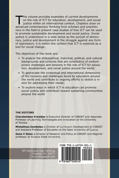 A volume in Current Perspectives on Applied Information Technologies Series Editors Charalambos Vrasidas and Gene V Glass This volume provides examples of current developments on the role of ICT for education, development, and social justice within an international context. Chapters draw on advanced contemporary thinking from scholars and practitioners in the field to present case studies of how ICT can be used to promote sustainable development and social justice. Social justice is understood in a wide sense as the pursuit of democracy, justice and development in the struggle against any form…mehr