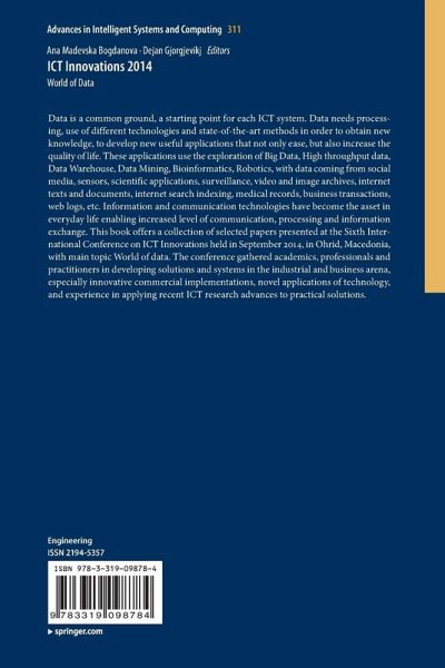 Data is a common ground, a starting point for each ICT system. Data needs processing, use of different technologies and state-of-the-art methods in order to obtain new knowledge, to develop new useful applications that not only ease, but also increase the quality of life. These applications use the exploration of Big Data, High throughput data, Data Warehouse, Data Mining, Bioinformatics, Robotics, with data coming from social media, sensors, scientific applications, surveillance, video and image archives, internet texts and documents, internet search indexing, medical records, business transactions, web logs, etc. Information and communication technologies have become the asset in everyday life enabling increased level of communication, processing and information exchange. This book offers a collection of selected papers presented at the Sixth International Conference on ICT Innovations held in September 2014, in Ohrid, Macedonia, with main topic World of data. The conference gathered academics, professionals and practitioners in developing solutions and systems in the industrial and business arena, especially innovative commercial implementations, novel applications of technology, and experience in applying recent ICT research advances to practical solutions.