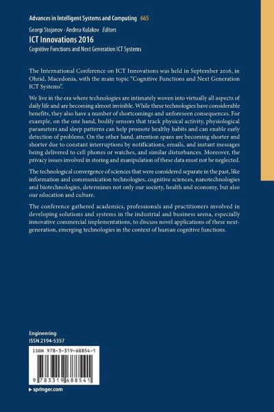 The International Conference on ICT Innovations was held in September 2016, in Ohrid, Macedonia, with the main topic "Cognitive Functions and Next Generation ICT Systems".