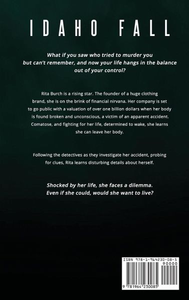 What if you saw who tried to murder you but can't remember, and now your life hangs in the balance out of your control? Rita Burch is a rising star. The founder of a huge clothing brand, she is on the brink of financial nirvana. Her company is set to go public with a valuation of over one billion dollars when her body is found broken and unconscious, a victim of an apparent accident. Comatose, and fighting for her life, determined to wake, she learns she can leave her body. Following the detectives as they investigate her accident, probing for clues, Rita learns disturbing details about herself. Shocked by her life, she faces a dilemma. Even if she could, would she want to live?