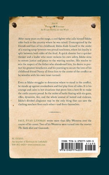 After many years on the range, a cool fighter who calls himself Idaho rides back to the country where he was raised. Unrecognized by the friends and foes of his childhood, Idaho finds himself in the midst of a roaring scrap between two proud ranchmen and he finds his loyalty split on both sides of the feud. A quick shooter but a quicker thinker, a leader and fighter who never reckons his own safety, Idaho aims to restore justice and peace to the warring ranches. His resolve to win the respect of a father who abandoned him, his desire to protect his greatest benefactor, and his yearning to secure the love of his childhood friend Nancy, force him in the center of the conflict, even as he wrestles with his own inner turmoil. Even as Idaho struggles to determine where to stand in the conflict, he stands up against crookedness and foul play from all sides! His shrewd plans for recapturing fence wire and a stolen stream, his hair-trigger action to save lives in tough spots, his fairness and human sympathy—it is his courage and calm in hot situations that prove him a hero fit to make the cattle country proud. In the midst of battle blazing with six-guns, rifles, dynamite, fire, and the whole arsenal of hatred and violence, Idaho’s divided allegiance may be the only thing that can save the clashing ranchers from each other—and from themselves.