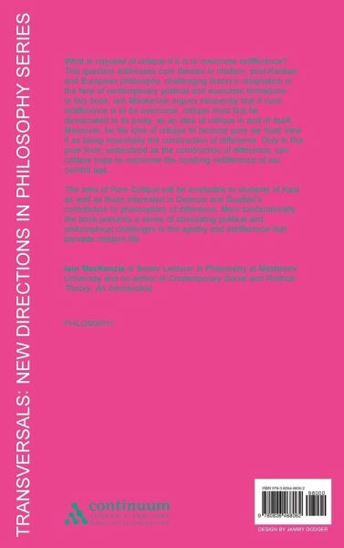What is required of the idea of critique if it is to overcome indifference? This question addresses core themes in modern, post-Kantian and European philosophy, challenging theory's resignation in the face of contemporary political and economic formations. If indifference is to be overcome, critique must be demarcated in its purity, as an idea of critique in and of itself. For the idea of critique to become pure we must view critique as the construction of difference-only pure critique, as the construction of difference, can overcome our current age of indifference. The Idea of Pure Critique will appeal to students of Kant as well as to the many interested in Deleuze and Guattari's contribution to philosophies of difference. More fundamentally, the book presents a series of political and philosophical challenges to the apathy that pervades modern forms of life.