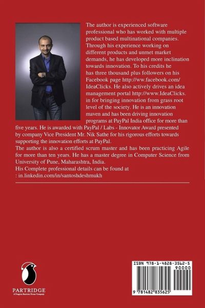 The author is experienced software professional who has worked with multiple product based multinational companies. Through his experience working on different products and unmet market demands, he has developed more inclination towards innovation. To his credits he has three thousand plus followers on his Facebook page http://ww.facebook.com/IdeaClicks. He also actively drives an idea management portal http://www.IdeaClicks.in for bringing innovation from grass root level of the society. He is an innovation maven and has been driving innovation programs at PayPal India office for more than five years. He is awarded with PayPal / Labs - Innovator Award presented by company Vice President Mr. Nik Sathe for his rigorous efforts towards supporting the innovation efforts at PayPal. The author is also a certified scrum master and has been practicing Agile for more than ten years. He has a master degree in Computer Science from University of Pune, Maharashtra, India. His Complete professional details can be found at : in.linkedin.com/in/santoshdeshmukh