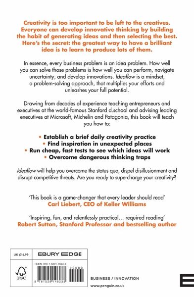 'A game-changer' 'A must-read' 'Simple yet powerful' The single best way to have a great idea is to produce lots of ideas. The number of new ideas your organization can produce is a metric for its ability to generate novel solutions to any given problem. Your ideaflow is the most crucial business metric that you've never considered. Every business problem is, finally, an idea problem. How well you can solve those problems is how well you and your business can perform, navigate uncertainty, and develop innovations. Drawing from their decades of teaching Silicon Valley entrepreneurs and Fortune 500 executives at the world famous Stanford d.school and leading innovative companies like Patagonia, Klebahn and Utley offer a battle-tested framework to exponentially boost your ideaflow. You'll learn how to: -- Establish a brief daily creativity practice -- Develop thousands of great ideas on demand -- Run cheap, fast tests to determine which ideas will work -- Persuade your team and organization on the importance of centering ideaflow Are you ready to supercharge your organization's creativity?