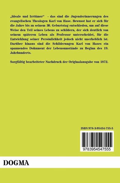 Ideale und Irrtümer - das sind die Jugenderinnerungen des evangelischen Theologen Karl von Hase. Bewusst hat er sich für die Jahre bis zu seinem 30. Geburtstag entschieden, um auf diese Weise den Teil seines Lebens zu schildern, der sich deutlich von seinem späteren Leben als Professor unterscheidet, für die Entwicklung seiner Persönlichkeit jedoch nicht unerheblich ist. Darüber hinaus sind die Schilderungen Karl von Hases ein spannendes Dokument der Lebensumstände zu Beginn des 19. Jahrhunderts.