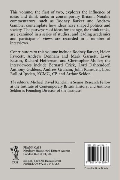 This study looks at the influence of ideas and think tanks in Britain, contemplating how ideas have shaped politics and society. The purveyors of ideas for change - the think tanks - are examined, and academics and participants vieww are recorded in a number of interviews.